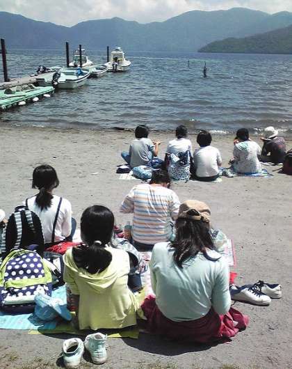 日光林間学校2日目 菖蒲ヶ浜で昼食