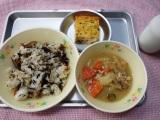 16日のこんだては、ひじきごはん・擬製豆腐・ご汁・牛乳です。