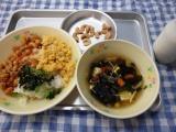10日のこんだては、三色ごはん・わかめスープ・キャンディーナッツ・牛乳です。