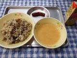 10月23日の給食 公開日 2014/10/23 更新日 2014/10/23 今日の出来事 23日のこんだては、根菜ピラフ・ウインナーのケチャップ和え・秋色ポタージュ・みかんジュースです。 秋色ポタージュは、人参を茹でてすりつぶして、秋の紅葉を表しています。食事は、目で楽しむ部分が多いので、作る楽しみも、食べる楽しみも倍増しますね。