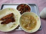 10月30日の給食 公開日 2014/10/30 更新日 2014/10/30 今日の出来事 30日のこんだては、さんまのかば焼き丼・五目煮豆・みそ汁・牛乳です。 サンマは、秋が旬で、刀のようにそりかえっていることから、漢字で「秋の刀の魚」と書きます。栄養が豊富で、たんぱく質やビタミン、ミネラルが豊富です。体の血液を増やしてくれるビタミンが豊富ですので、成長盛りのみなさんにはぴったりの魚ですね。小骨があるので、しっかり噛んで食べて下さいね。