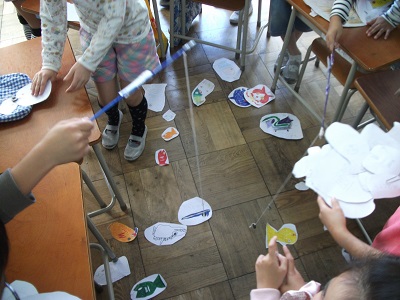今年は、定番の射的やボーリングの他に、プラトンボ作りやスライム作り、アスレチックゲームやすごろくゲーム、トランプの遊び方紹介屋さんなど、各クラス工夫を凝らしたお店が多数開かれました。子供たちは楽しそうに子どもまつりの時間を過ごしていました。