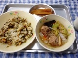 11月7日の給食 公開日 2014/11/11 更新日 2014/11/11 今日の出来事 7日のこんだては、カミカミ高菜ごはん・白菜とにくだんごのスープ・ちくわの甘辛煮・牛乳です。 明日、11月8日はいい歯の日です。11(いい)8(歯)という語呂合わせから、日本歯科医師会 が制定しました。今日は、健康でいい歯になるような献立を取り入れました。よくかんでいい歯並びになるようにあごを鍛えましょう。