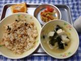 17日のこんだては、そぼろごはん・みそ汁・ラーサイ・くだもの(いよかん1/4)・牛乳です。