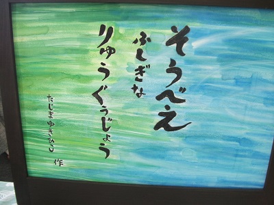 「そうべいふしぎなりゅうぐうじょう」を読んでいただきました。紙芝居の中には、様々な登場人物が出てくるのですが、ボランティアさんたちの役になりきった台詞の言い回しがとても上手でした(特に「喝」の台詞は子供たちもびっくりでした)。なんと、今回の紙芝居の、場面絵と木枠はお手製だそうです!