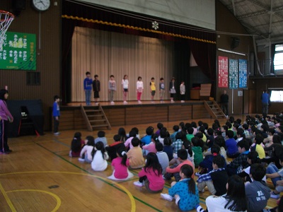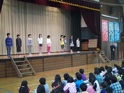 4月22日、今日の集会は委員会紹介集会でした。 各委員長の自己紹介と、活動内容をみんなに紹介しました。