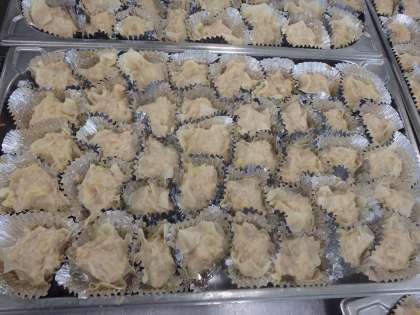 かいせんしゅうまいには、たらのすり身とえびが入っています。たらは冬が旬の魚で、漢字で書くと「鱈:魚へんに雪」と書きます。身が雪のように白いこと、雪の降るころにおいしくなることからです。おなかいっぱい食べることを「たらふく食べる」といいますが、「たらふく」は漢字で「鱈腹:鱈の腹」と書きます。たらは何でも食べる大食いの魚で、たらの腹のようになるまで食べることを表していることからこの字があてられたようです。