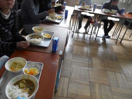 縦割り班のメンバーと食べる給食は、いつもの給食と一味違う雰囲気でした。みんなでおいしくいただくことができました。