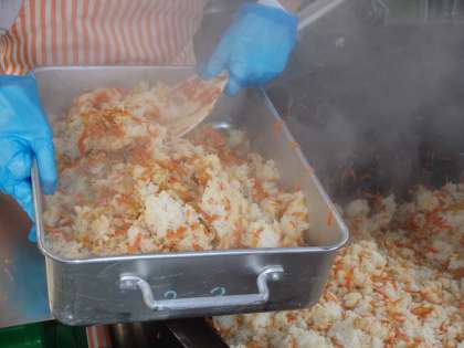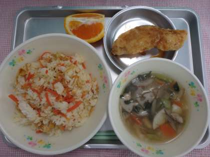 給食には、ほとんど毎日にんじんが使われていますね。にんじんの赤い色が料理に加わると、彩りがよくなって料理がいっそうおいしそうに見えます。にんじんには「カロテン」とい栄養がたくさん含まれています。肌をつるつるにしたり、病気にかかりにくくしてくれます。目の働きも助けてくれます。にんじんは、昔は嫌われものの食べ物の代表でしたが、においが少なくなり、甘みが増したことで、今はずいぶん食べやすくなりました。