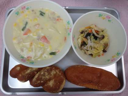 3月4日の給食 公開日 2016/03/09 更新日 2016/03/09 今日の出来事 <こんだて> ミニあげパン2こ(きなこ・シナモン) コーンシチュー わふうサラダ オレンジジュース 今日はきなことシナモンの2種類のミニ揚げパンです。きなこは大豆を粉にしたものです。大豆は栄養豊富で「畑の肉」といわれています。きなこは粉になっているので消化がよく、大豆の栄養がしっかり体に取り込まれます。シナモンは、独特の香りがありますが、体を温めたり胃を健康に保つ働きがあります。