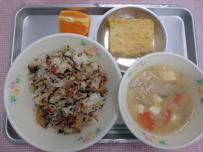 3月10日の給食 公開日 2016/03/11 更新日 2016/03/11 今日の出来事 <こんだて> ひじきごはん あつやきたまご ごじる くだもの ぎゅうにゅう 今日の卵焼きには、卵を約550個使いました。1個ずつ、きれいな卵か確認しながら割っていきます。そして、溶いた後に殻が混ざっていないか確認するためザルでこします。大変な作業ですが、安心・安全な給食を作るため、気をつけながら1つ1つ作業を行います。