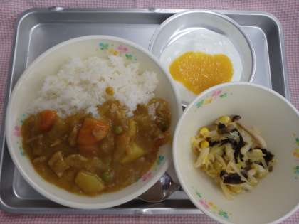4月8日の給食 公開日 2016/04/11 更新日 2016/04/11 今日の出来事 <こんだて> カレーライス わふうサラダ ヨーグルトピーチソース ぎゅうにゅう 新年度が始まりましたね。今年度も給食をしっかり食べて、毎日元気に過ごしましょう! 今年度最初の給食は、カレーライスです。ルーも手作りで、大きな釜でじっくり煮込んで作るカレーは、いつでも人気メニューです。