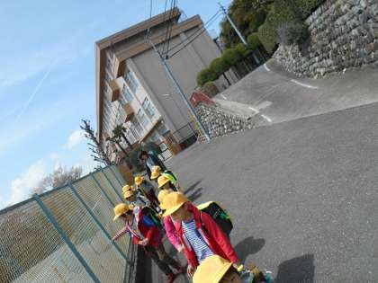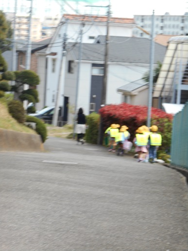 1年生は赤・黄・緑・水色・白の5つのコースに分かれて集団下校します。集団下校初日は、自分が何コースなのか、誰と一緒に帰るのか分からず不安そうな表情でしたが、3日目の今日は落ち着いて行動できていました。