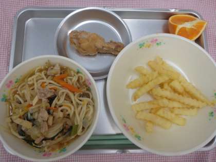 4月12日の給食 公開日 2016/04/13 更新日 2016/04/13 今日の出来事 <こんだて> はちおうじラーメン とりてばのしょうゆに フレンチポテト くだもの ぎゅうにゅう 八王子ラーメンの特徴は、刻みたまねぎが入っていることです。この時期のたまねぎを、「新たまねぎ」とよびます。「新たまねぎ」は、とってもみずみずしくて辛みが少ないので、サラダなどで生で食べても甘くておいしいですよ。