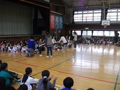 アサガオの種や校歌の歌詞カードなど各学年から気持ちを込めたプレゼントを贈りました。