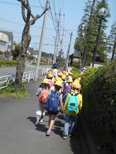 入学して初めての遠足。朝は、わくわくした様子で教室に入ってきました。出発式で遠足での約束事を確認していよいよ出発!先日の交通安全教室で学んだ、歩道を歩くときや横断歩道の渡るときの約束をしっかり守って陵南公園まで歩くことができました。