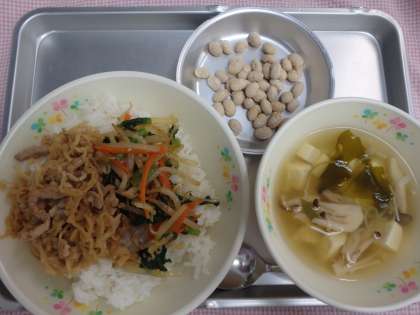 5月13日の給食 公開日 2016/05/16 更新日 2016/05/16 今日の出来事 <こんだて> ビビンバ きのこじる キャンディビーンズ ぎゅうにゅう ビビンバは、韓国の料理で、 「ピビム」が「混ぜる」、「パプ」が「ごはん」の意味です。日本では、一般的に「ビビンバ」とよばれます。給食のビビンバには、お肉に切り干し大根を加えてボリュームを増し、ヘルシーで野菜たっぷり!レシピをのせましたので、ご家庭でもぜひお試しください。 ビビンバ