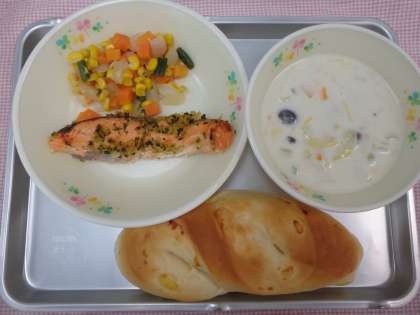 5月31日の給食 公開日 2016/06/01 更新日 2016/06/01 今日の出来事 <こんだて> チーズパン さけのハーブやき ベジタブルソテー ミルクスープ りんごジュース 牛乳には体に必要な栄養が、たくさんふくまれています。その中でもカルシウムは体に吸収しやすい形になっているので、骨や歯の成長に役立ちます。また、体の成長を助けるビタミンB2もたっぷりふくまれています。牛乳を飲むのが苦手な人は、いろいろな料理に使って摂るようにするといいですね。