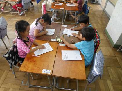 6月7日(火)、1年生は生活科の学習でそら豆のさやむきをしました。