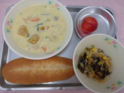 7月8日の給食 公開日 2016/07/08 更新日 2016/07/08 今日の出来事 <こんだて> ソフトフランスパン パンプキンシチュー わかめやさいのごまドレッシング くだもの(プラム) のむヨーグルト かぼちゃは、今が旬の夏野菜です。かぼちゃの重さを競うコンテストが毎年いろいろなところで行われています。日本記録は、2011年・北海道の591kgですが、世界記録は2014年・スイスの大会の1,054kgだそうです。今日はかぼちゃを使ってパンプキンシチューを作りました。