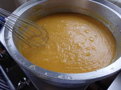 今日は黄色い桃の缶詰でピーチソースを作りました。桃は夏の果物です。これからお店にたくさん並び始めて9月頃までおいしく食べられます。給食では生の果物を皮をむいて出すことができないので、旬の生の桃はお家で食べてくださいね。