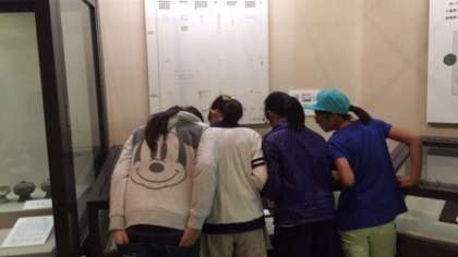 さきたま古墳見学です。雨のため、丸墓山古墳には登りませんでしたが、資料館の中で、しっかりと古墳について勉強しました。写真は、将軍山古墳資料館見学の写真です。