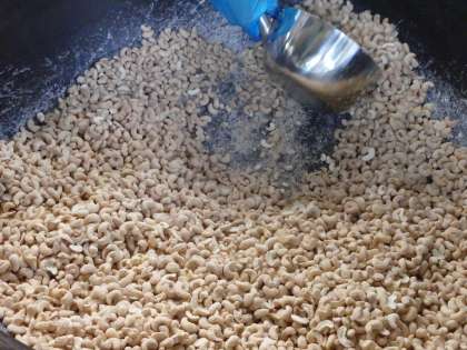 今日のナッツはカシューナッツです。カシューナッツは別名「マガタノキ」といわれています。花が落ちた後に根元の部分がピーマンのような形に大きくなり、熟すとりんごのような香りがするので、「カシューアップル」ともよばれているそうです。このカシューアップルの先にぶらさがっているのが、かたいからをかぶったカシューナッツ。種が実の外にあるなんて、なんともふしぎですね。