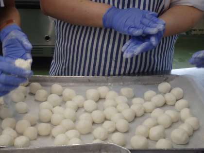つきみだんごは1人2個で、全部で1100個のおだんごを丸めて作りました。みんなとてもよく食べてくれました!