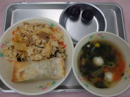 キムチは韓国の代表的な漬物です。日本では白菜のキムチがおなじみですが、韓国では、大根やきゅうりなど様々な野菜のキムチや魚介類を加えて作るキムチもあります。韓国語で「漬物」を意味する言葉「キムチェ」が変化して「キムチ」と呼ばれるようになったそうです。キムチにはトウガラシが使われていて辛いですが、この辛み成分は「カプサイシン」といって、血の流れをよくし、体温をあげてくれたりかぜをひきにくくしてくれる効果があります。辛いものが苦手な人は、スープや牛乳で辛みをやわらげて食べてくださいね。