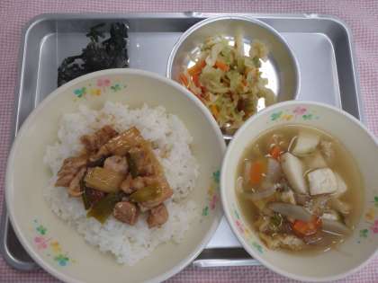 11月1日の給食 公開日 2016/11/08 更新日 2016/11/08 今日の出来事 <こんだて> やきとりどんぶり けんちんじる キャベツのしょうがふうみ ぎゅうにゅう やきとりどんぶりは、鶏肉とぶつ切りにした長ねぎを焼いて、たれをからめたものをごはんにのせて食べます。長ねぎは今が旬の野菜です。長ねぎには辛みがありますが、この辛みは血行をよくし、体温をあげてくれるので、かぜのひき始めによい食べ物といわれています。よく煮ると甘くなるので食べやすくなります。
