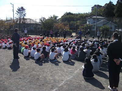 遊びの途中で訓練が始まったのですが、放送の指示を静かに聞こうとする児童がたくさんいました。えらい!
