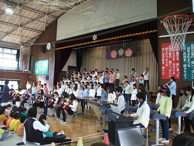 金管楽器を加えた合奏は、力強さが感じられました。笑顔で楽しそうに演奏する6年生。会場全体も楽しい雰囲気になりました。