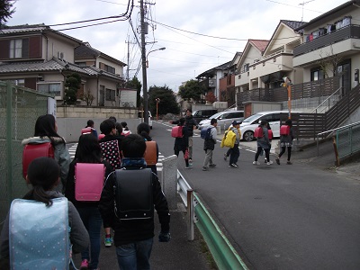 低学年・中学年・高学年ごとに同じ方面に帰る友達と下校しました。訓練の時だけでなく、道を横に広がらず安全に下校できるといいですね。御家庭でも、正しい通学路での帰宅経路の御確認をよろしくお願いいたします。