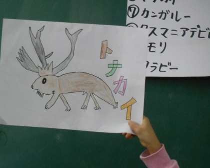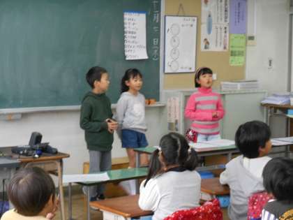 「フラミンゴの身長は、誰と同じくらいでしょう。1.○○くん 2.○○くん 3.○○先生・・・」とクイズも1年生が楽しめるように考えました。緊張しながらも、大きな声で発表する姿は1年生のお手本となりました。たくさん練習してきた2年生。スムーズに発表会を進めることができました。