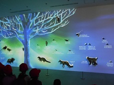 初めて行った「高尾599ミュージアム」では、プロジェクションマッピングを鑑賞し、高尾山にいる動物や植物について学びました。映像に出てくる動物の種類に興味を示したり、高尾山の四季の変化を感じたりしている姿がありました。