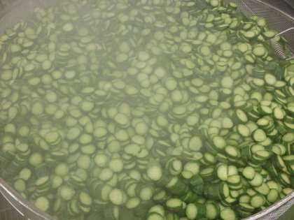 給食では食中毒防止のため、きゅうりも蒸したりゆでたりして加熱し、調味料にも火を通して味付けします。