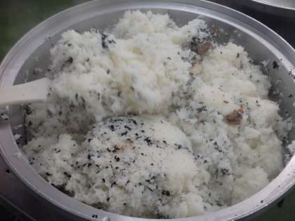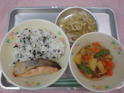 今日のごはんにはうめぼしとわかめが入っています。うめぼしは日本の伝統的なつけものです。うめぼしのすっぱい成分は「クエンさん」といいます。体のつかれをとってくれたり、すっぱい刺激で食欲も増進!殺菌効果もあるので、おべんとうやおにぎりにもピッタリです。