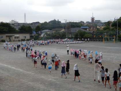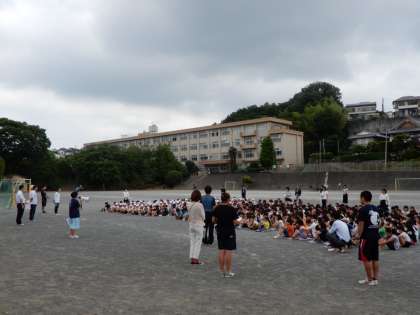 避難訓練 公開日 2017/06/09 更新日 2017/06/09 今日の出来事 6月の避難訓練は、火災を想定して実施しました。500人が一斉に校庭へ避難しました。「お・か・し・も」の約束を守って、みんな真剣に取り組みました。