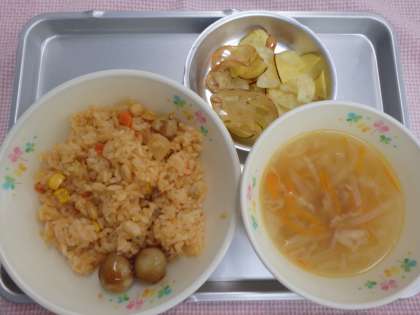 6月12日の給食 公開日 2017/06/14 更新日 2017/06/14 今日の出来事 <こんだて> だいずピラフ うずらたまごのケチャップに ジュリエンヌスープ やさいチップス ぎゅうにゅう ジュリエンヌスープの「ジュリエンヌ」とは、フランス語で千切りのことです。ジュリアンというコックさんが、野菜の千切りをいれたスープを作ったのが語源とされています。食べ物の名前は、いろいろなふうにつけられて、おもしろいですね。