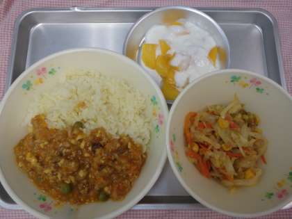 ヨーグルトは、牛乳に乳酸菌という菌を入れて発酵させた食品です。ヨーグルトに含まれる乳酸菌は、腸の中で悪い菌を減らしてよい菌を増やし、腸をきれいにしてくれます。かぜなどをひかないようにする「免疫力」を高める働きもあります。今日のようにフルーツとあえたり、そのまま食べるほかに、肉の臭みを消したりやわらかくする作用があるので料理にも使われます。