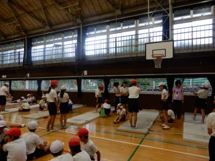 雨のため、体育館の中でできる種目を実施しました。みんなで励まし合いながら、一生懸命取り組んでいました。