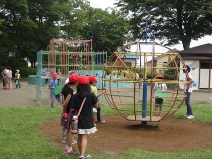 公園にはどんな遊具があるのか、どんな人が来ているのか、どんな生き物や植物があるかを調べました。展望台、広場、遊具広場をよく観察し、カードにまとめました。なぜみんな使う施設が必要なのかを考えたり、公園には約束があることに気付いたりすることができました。