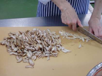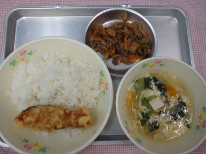 きんぴらに入っているごぼうは、江戸時代に力のつく食べ物と考えられていました。また、食物繊維がたくさん入っていて、強い歯ごたえがあります。江戸時代に「坂田金平」という人の物語が語られていました。坂田金平は、強くて力持ち。そこから、「きんぴら」の名前がついたといわれています。この坂田金平さん、みなさんがよく知っている金太郎の子どもなんです!しっかり食べて、強くて丈夫な体をつくりましょう!