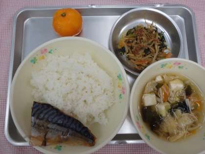 今日は東京2020オリンピック・パラリンピック競技大会に向けて「五つの輪で体力アップ」献立です。主食・主菜・副菜・果物・乳製品の五つの輪がそろった給食です。五つの栄養と食べる量について確認しましょう。