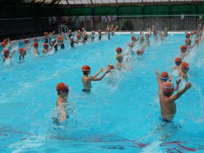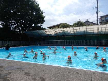 プール納め 公開日 2017/09/08 更新日 2017/09/08 今日の出来事 今日で、水泳学習はおしまいです。4年生が音楽に合わせて、リズム水泳を楽しく行いました。夏の間、安全に水泳の授業ができたことを感謝して、プール納めとなりました。