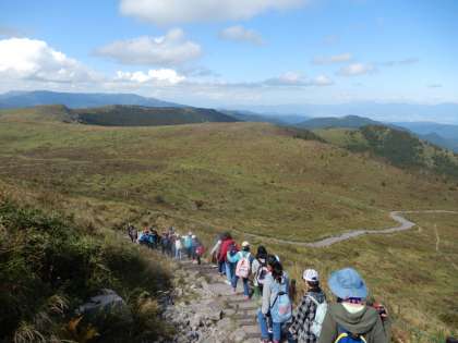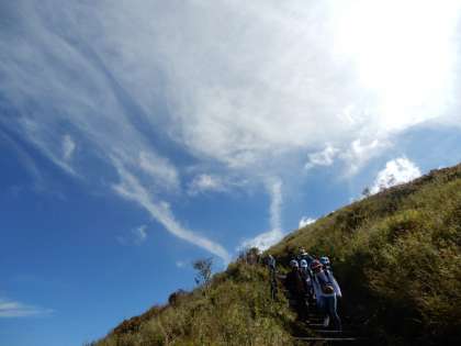 山頂から下山。みんな一歩一歩気をつけて歩きました。素晴らしい景色を満喫しました。
