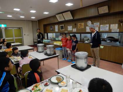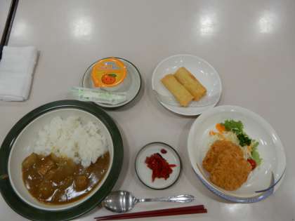 夕食の時間です。カレーライスをおいしくいただきました。みんなよく食べていました。
