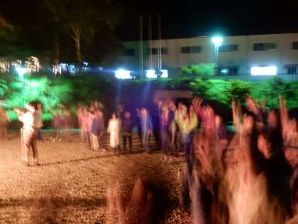 明るく大きく燃えるキャンプファイヤーに照らされて、みんなでノリノリで「ゴーストバスターズ」と「女々しくて」を踊りました。