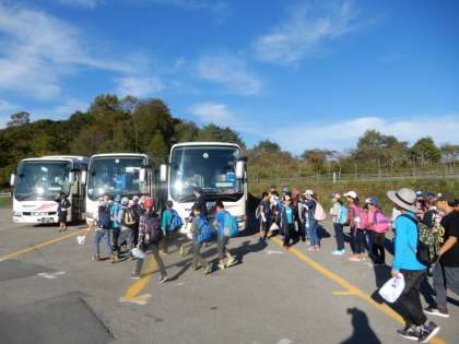 ゴール!みんなよくがんばって歩きました。えらい! バスに乗って、宿舎へ。