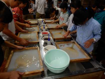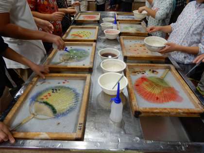 早速、挑戦です。水の冷たさを感じながら、作業に集中します。カラフルな作品が出来上がって行きました。